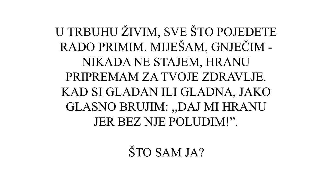 Uz pomoć prezentacije i zabavnih zagonetki djeca su upoznala osnovne organe u ljudskome tijelu. Naučili smo gdje se nalaze srce, mozak, pluća, želudac i crijeva te koja je njihova važna uloga u našemu zdravlju i svakodnevnome funkcioniranju.