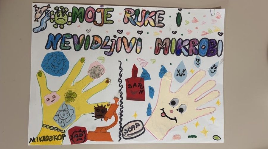 Nakon detaljnog objašnjenja postupka pranja ruku, djeca su isti demonstrirala. Saznala su kako na našim rukama mogu živjeti bakterije, virusi, gljivice i paraziti – mali organizmi koje ne vidimo golim okom, a mogu izazvati bolesti u cijelome tijelu.