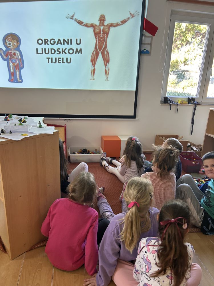 Djeca su s velikim interesom sudjelovala u rješavanju zagonetki, promatrala prikaze organa i razgovarala o tome kako funkcionira naše tijelo. Na ovaj smo način poticali njihovu znatiželju, razvijali nova znanja te osvijestili važnost brige o vlastitome tijelu i zdravlju.